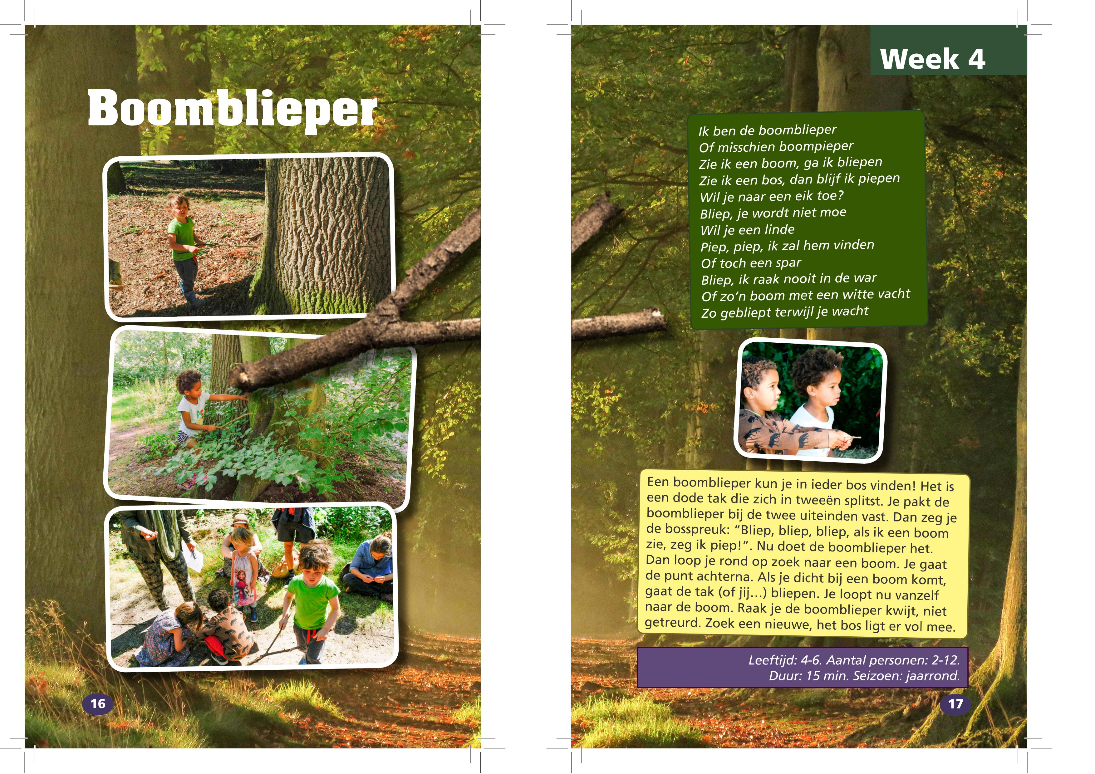Gebruik een boomblieper of ga sumoworstelen op een boomstronk. Per week een boomactiviteit passend bij die periode. Een heel jaar boomplezier voor de leeftijdsgroepen: 4-6 jaar, 6-10 jaar en 16+. De meeste ideeën zijn nieuw. Voor iedereen die op speelse wijze de natuur in gaat. De activiteiten zijn aangevuld met achtergrondinformatie en Gekke weetjes. Welke rare boom heeft bladeren met aan twee kanten bladgroen??